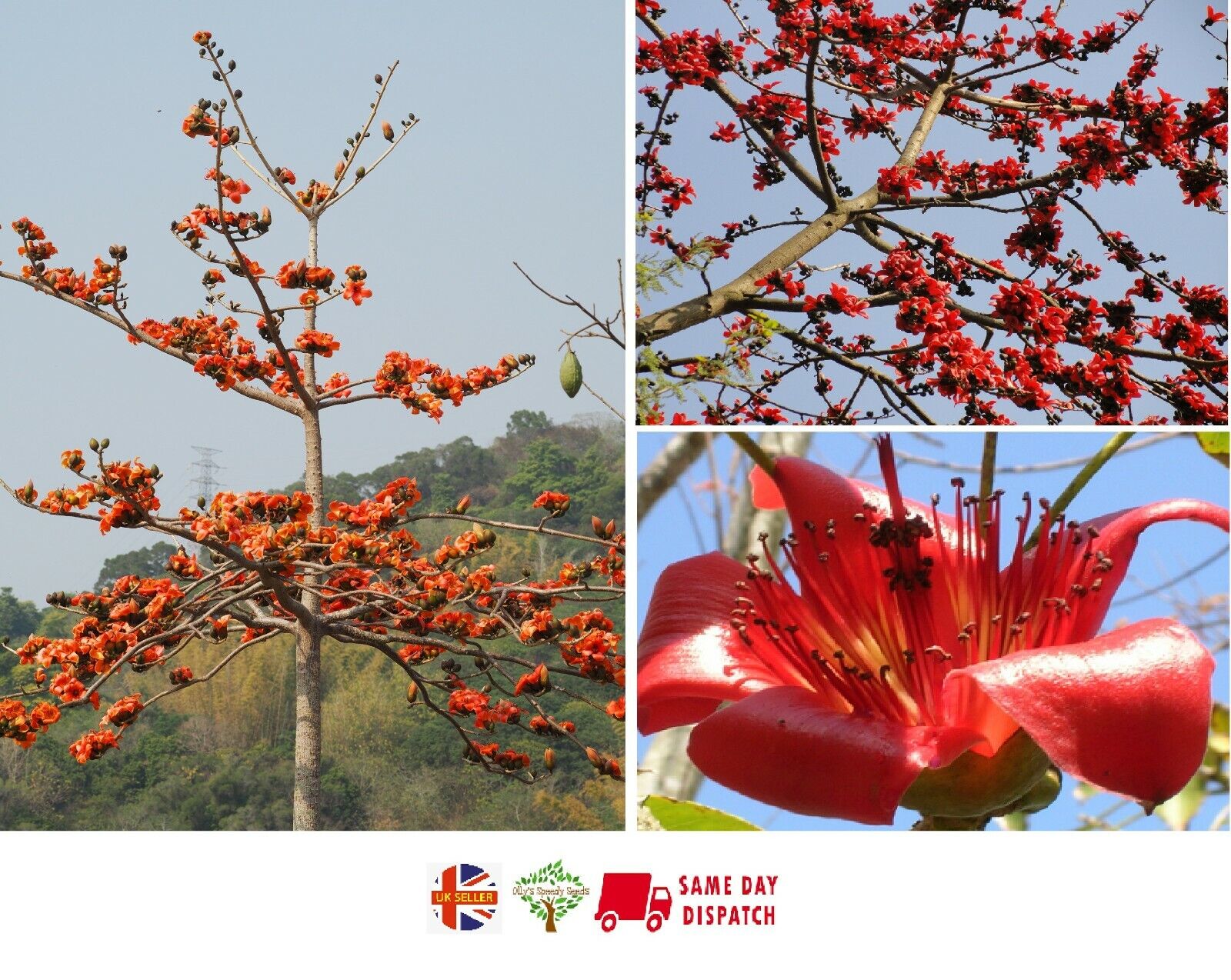 Dear ebayers,Please find for sale 10 fresh and pretty rare seeds for Bombax Ceiba better known as the Red Cotton Flowered Tree or in Cantonese æ¨æ£ . Other common names over the world are Kapok Tree, Red Silk Cotton Tree and Silk Cotton tree. I hope to be selling plants I have raised from seed soon.This beautiful tree is best considered half-hardy in the UK. Whilst it can tolerate a few degrees of frost once established, unless you live in the South of England and have a sheltered spot, it is best grown as a large container plant - brought into greenhouse or conservatories in winter or otherwise given protection. Luckily this tree thrives in containers.Bombax ceiba, is fast-growing with an erect stem that develops buttresses when mature and an umbrella shaped crown. The leaves are bright green, leathery, and rounded. The flowers are cup shaped and red. The fruits are brown oval capsule. Plant parts like flowers, young root, gum, leaves, shoots, and bark have traditional medicine properties and are used as treatment for various conditions and diseases like cholera, fractures, toothache, coughs, urinary problems, influenza, and snake bites among others. The flowers are edible when cooked and are highly valued as a curry vegetable. Young leaves are edible as well and cooked and eaten as vegetable. Moreover, ripe seeds and young roots are roasted. Edible oil can be obtained from the seed, fibre from the inner bark, and gum containing tannins from the bark and sapling root. Seed oil is also used in soap making.PLEASE NOTE: All orders received before 8pm (Mon-Fri) will be dispatched same daySAVE PACKAGING MATERIALS - SEE OTHER INTERESTING & UNUSUAL SEEDS & PLANTS IN MY EBAY SHOPINSTRUCTIONS - TO SAVE PAPER I NO LONGER SEND OUT WRITTEN INSTRUCTIONS TO CUSTOMERS. INSTRUCTIONS ARE BELOW SO PLEASE BOOKMARK THIS PAGE. FEEL FREE TO MESSAGE ME WITH ANY GROWING QUESTIONS.Germination GuideSoak the seeds in glass of tepid water for 12 hours approxPrepare a tray of moist free draining compost mix - ideally a 50/5-0 mix of sieved compost and vermiculiteSow seeds individually 5-10mm deepLoosely cover with a clear plastic bag to maintain humidityKeep in a warm place, ideally 23-25cGermination can be erratic but first seedlings should appear after 2-3 weeksKeep moist - best to place seed tray inside a waterproof container and water from the bottomPrick out seedlings as soon as large enough to handle.Pot on as requiredOlly's General Guide to Seed Sowing!I love sowing seeds and it runs in the family - dad, granddad and finally my great-granddad for whom the hobby helped him get over his experiences in the Great War. I still get a big kick when I see the first seedling poking through from a new plant that I have never sown before or been successful at. However, even the most experienced gardeners draw "blanks" from time to time. Whilst I sow all the seeds that I sell so I know that they are viable, some are trickier than others and problems can arise so here are some tips to make "blanks" few and far between:1) Donât Rush! Tempting though it is when that packet arrives in the post to simply bung the seeds in some compost!2) Google and YouTube are your friends! Take some time so see the methods other people use to germinate the seed. 3) Think Nature! What conditions do seeds face? For example a seed from a tropical plant will fall to the warm, wet and dark jungle floor. A seed from the mountains of Europe will fall to the floor in Autumn, then have to endure months of freezing temperatures before germinating in the spring. So as growers, what we are trying to do is to simulate the conditions that the seeds will naturally experience and there are plenty of tricks that can be done to short cut the processes somewhat.4) Good compost pays dividends. The best investment you can make is to purchase three bags - one of potting compost, one of vermiculite and one of horticultural sand. With these three bags I can make up whatever soil type a particular seed likes (although for most seeds I find a 50/50 mix of compost and vermiculite works just fine) 5) Rot is your enemy. The single biggest danger to seed germination is rot - either before or after "damping off" the seeds germinate. To reduce the risk, ensure you have good free draining soil mix and that it is moist but not wet. Unless the seed variety absolutely requires it I prefer NOT to cover my seeds trays with plastic bags, Whilst germination is often faster this way, it greatly increases the risk of rot. I prefer to place my seed trans inside a watertight plastic tray and water from the bottom - airflow over the surface reduces the risk.Overseas OrdersBuyers please note that they are responsible for any local customs duties or other taxes in their local country and should also ensure compliance with an biosecurity regulations.Any problems? Don't rush to review - message us first and we will get it sorted quickly!